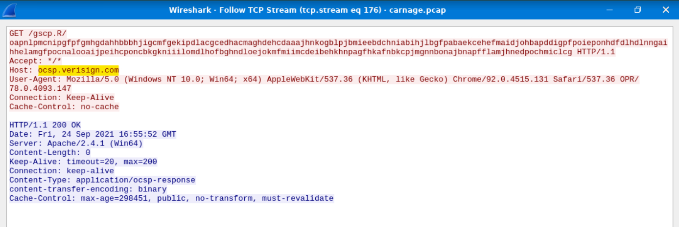 We can find the answer to this by simply filtering for http in Wireshark. Since we’re looking for the first connection, it’s the first packet that comes up.
