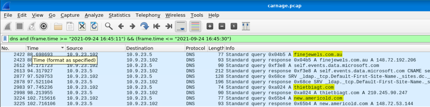 dns and (frame.time >= "2021-09-24 16:45:11") && (frame.time <= "2021-09-24 16:45:30")